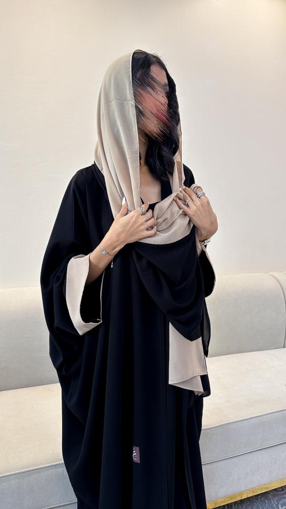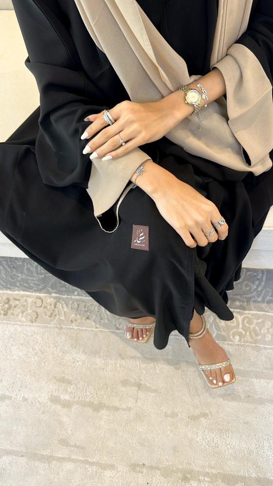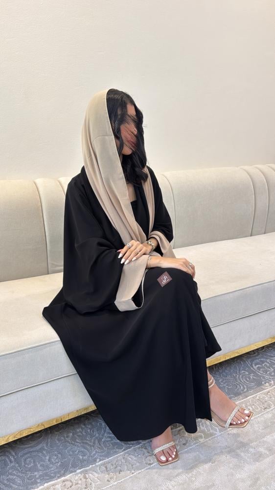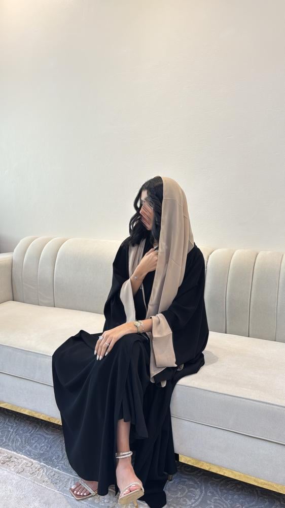 قماش العباية : كوبرا اسود وتدخيلات ندى بيج